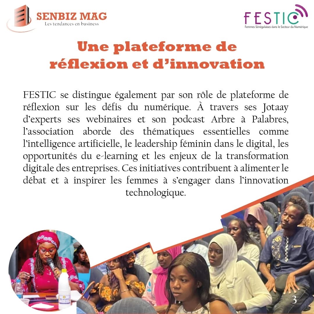 Sous le thème “Pour toutes les femmes et les filles : droits, égalité et autonomisation”, FESTIC déploie des programmes de formation, mentorat, sensibilisation et innovation sur tout le territoire sénégalais. Ces initiatives visent à réduire les écarts de genre dans les métiers du numérique et à renforcer les capacités des femmes, en particulier les plus vulnérables.