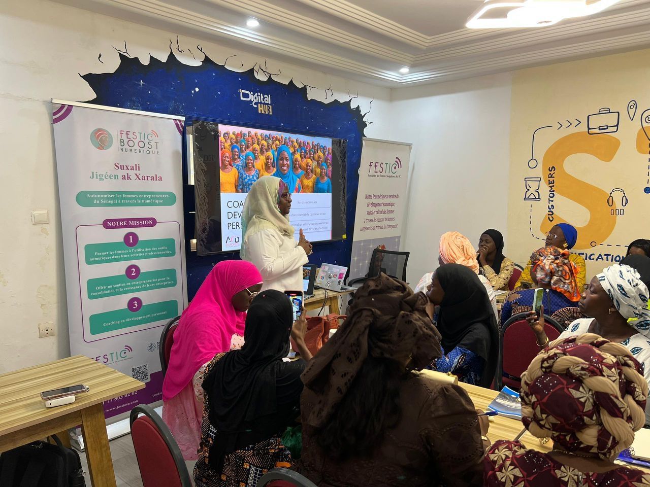 Du 16 au 20 septembre 2025, 50 femmes venues de Mbour, Saly, Ngaparou, Nguekhokh, Diass et Sandiara ont vécu une immersion exceptionnelle dans l’entrepreneuriat numérique grâce au programme FESTIC Boost Numérique (FBN), avec l’appui déterminant de l’Internet Society Foundation et l’accueil du Digital Hub de Saly.